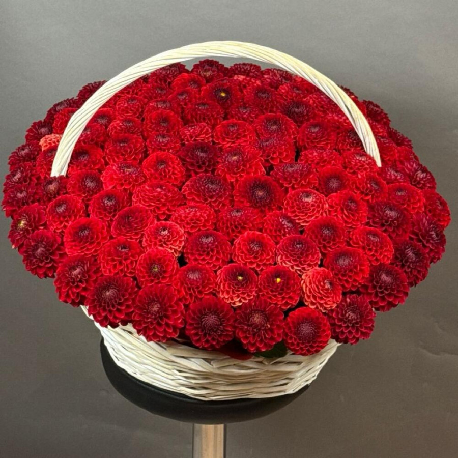 Композиция из 101 красной георгины в корзине в Каменске-Шахтинском