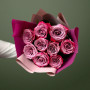 На фото букет из 9 фиолетовых роз. В составе: роза 9 шт, дизайнерская упаковка 2 шт, атласная лента 1 шт, . Все цветы свежие и ароматные, букет красиво оформлен и отлично подходит для подарка. Доступна доставка цветов или самовывоз.
